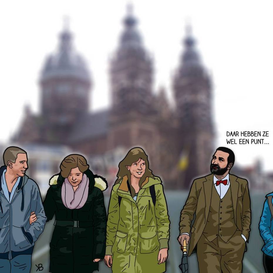 Zijn driedelig pak met strik zorgt fysiek voor de juiste afstand, zijn open vraagstelling voor compensatie in nabijheid. ‘Wat maakt een katholiek tot een goede katholiek?’, wil hij weten van een vrijzinnig-gelovige in het bisdom Haarlem. En van een pastoor in Banholt: ‘Is Limburg nog een rooms-katholieke provincie?’