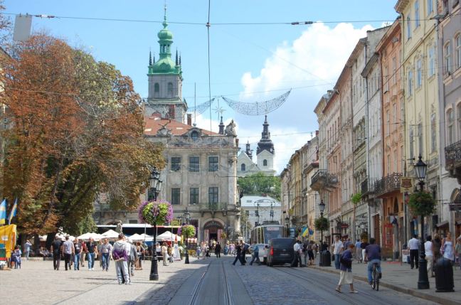 Wat zich van hem meester maakte, die eerste keer, doet misschien nog het meest aan een hevige verliefdheid denken. Waar de gemiddelde krantenlezer bij Oekraïne denkt aan sekstoerisme, cybercriminelen en misschien nog de nucleaire regen van Tsjernobyl (‘ze hebben allemaal gelijk’), gaan Michiel Driebergens gedachten uit naar sprookjesachtige architectuur, religieuze relikwieën en afgestofte teksten in de muren. ‘Alles was er nog in tact. Van de tijd dat de stad deel uitmaakte van het Habsburgse Rijk, dus voor de Eerste Wereldoorlog, staan de gebouwen nog overeind. Ongekend; we zijn in veel Oost-Europese steden geweest, maar zoiets had ik nog nooit gezien. Er was nooit iets gerestaureerd, maar dus ook nooit iets gesloopt. Het was er stoffig en vies, met overal afgebladderde muren, maar als je het met je ogen afstofte stond je intussen wel in een echt openluchtmuseum. Er was geen enkele mede-toerist, echt nul. We schaamden ons bijna om foto’s te maken op het centrale plein. Ik had verwacht dat er veel Polen woonden, maar ook dat was niet zo. Enerzijds voelde ik me heel erg thuis – het stratenplan en de burcht op de heuvel doet denken aan om het even welke andere typisch Europese provinciestad – anderzijds had de stad een vervreemdend effect op me. Daar zat ik, met m’n aardige woordje Pools, in een stad waar ieder straatnaambordje, iedere tekst in Cyrillisch schrift was gesteld. Inmiddels kan ik die vreemde tekentjes goed gelezen, maar die eerste keer hadden we geen idee hoe we de weg moesten vinden.’